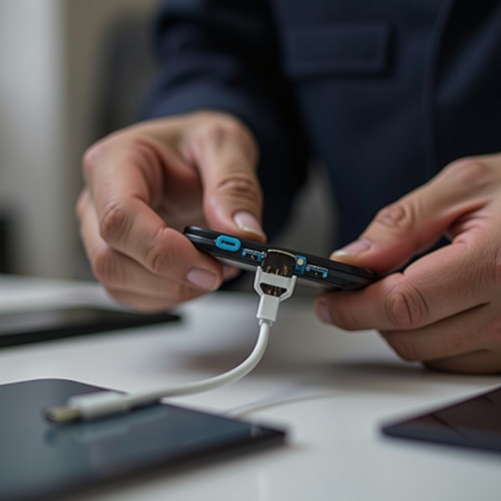 Řešení volného připojení je často jednoduché. Začněte vyčištěním nabíjecího portu, abyste odstranili prach a nečistoty. Použití nemetalického nástroje nebo stlačeného vzduchu může pomoci vyčistit odolné usazeniny. Následně se ujistěte, že je kabel správně zarovnán s portem, proveďte drobné úpravy, pokud je to nutné, abyste zajistili stabilní připojení. Čistá a dobře zarovnaná nabíjecí sestava často vyřeší problémy s připojením bez dalšího zásahu.